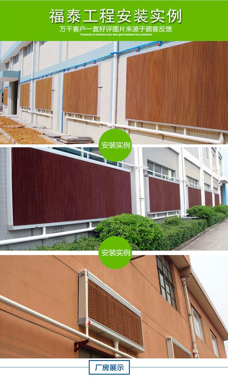 天熱了這兩天都是30多度的高溫,好多工廠真心的希望能讓我們趕緊過去安裝環(huán)??照{(diào)以免夏天的時候工人們中暑,車間降溫對于高溫廠房來說是刻不容緩的事情 水簾厚度的選擇:水簾厚度主要有10公分、15公分、20公分三種。水簾厚度大的蒸發(fā)效果稍好降溫稍大,15公分比10公分大概多降2度。水簾厚度大進氣阻力變大,水簾與負壓風機搭配是水簾面積需要加大。當水簾進氣阻力大時,負壓風機出現(xiàn)大量的空氣回流現(xiàn)象,抽風效果下降。所以鍍鋅板負壓風機、玻璃鋼方形扇、質(zhì)量差的喇叭扇只能選用10公分厚度水簾。